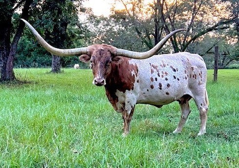 Katie has been one of our best producers that we have owned! She had a daughter, Riverforks Jazzy Cat, sell for $56,000.00 at the Legacy Sale in 2023! We have retained two heifers out of Katie and she has two bull calves that have made our very picky cut to get into the Tolar Longhorns Trophy Steer Herd.