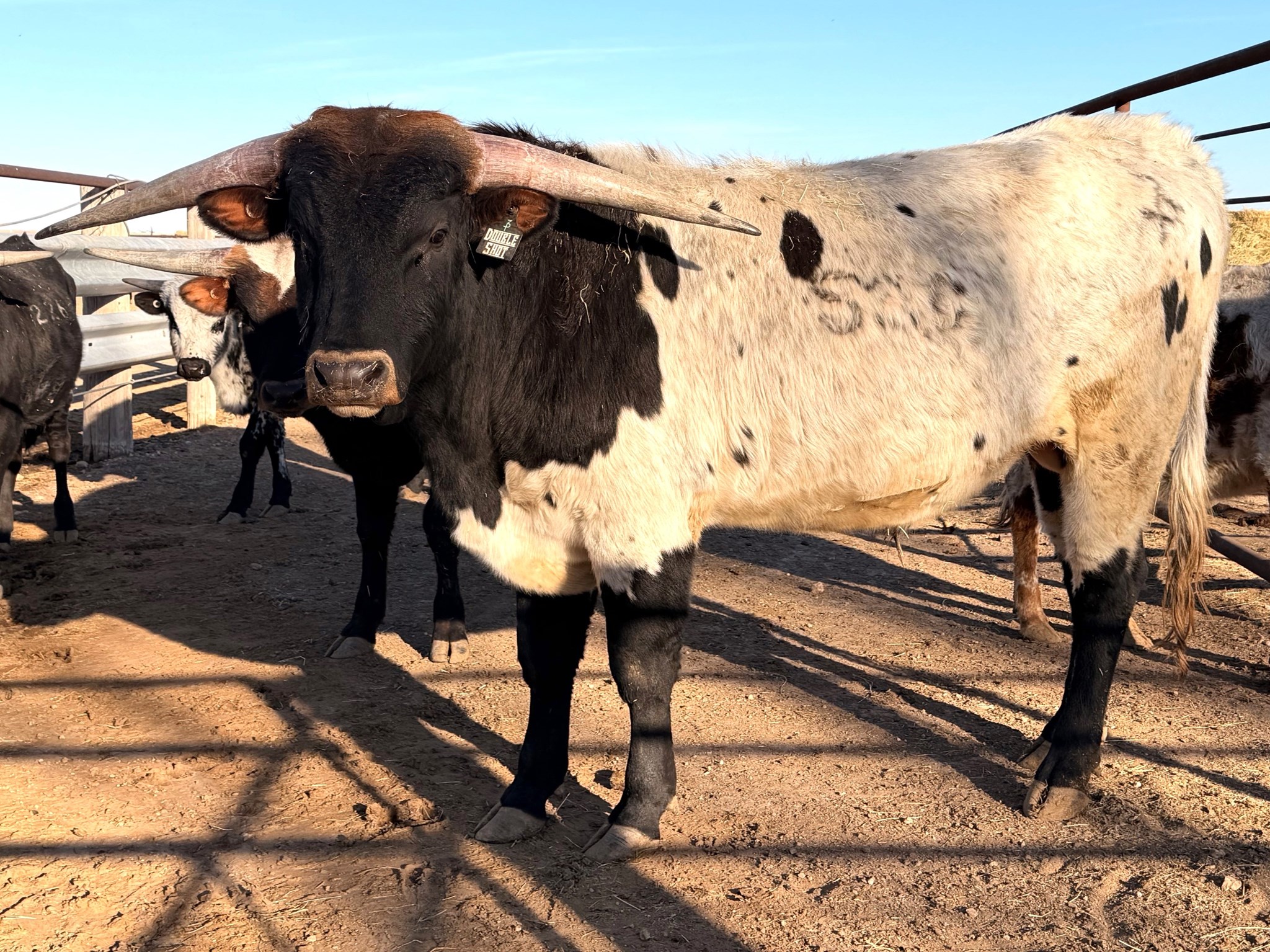 It's been quite the comedy discussing Double Shot born to TKR Royal "T" and RZ Royalty out of Drag. Yes, Royal "T" and Royalty had a baby. He's got it all with a pedigree that includes TCC Houdini, Royal Reputation, Cowboy Tuff Chex, Drag Iron, Jamakizm, and more. We are liking his size and conformation and he's darkening up to be a gorgeous Parker and white bull calf.