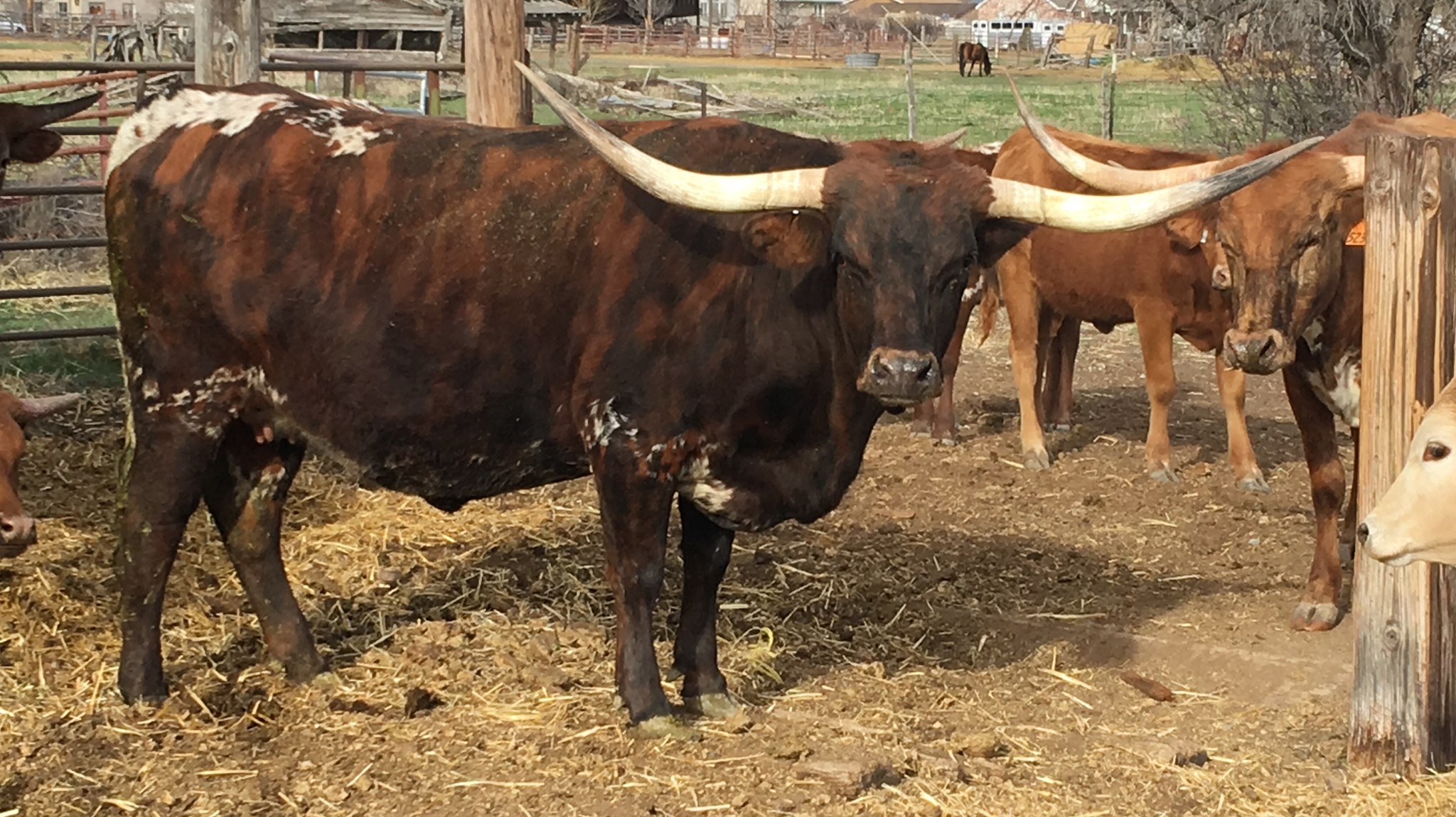 Another top notch offspring by Rio Casino with more color than a Vincent Van Gogh painting. Her dam Crash Alarm is a great producing cows that examplefies our breeding goal of a complete package Texas Longhorn. Heifer calf by our big framed Drag Iron son Atlas.