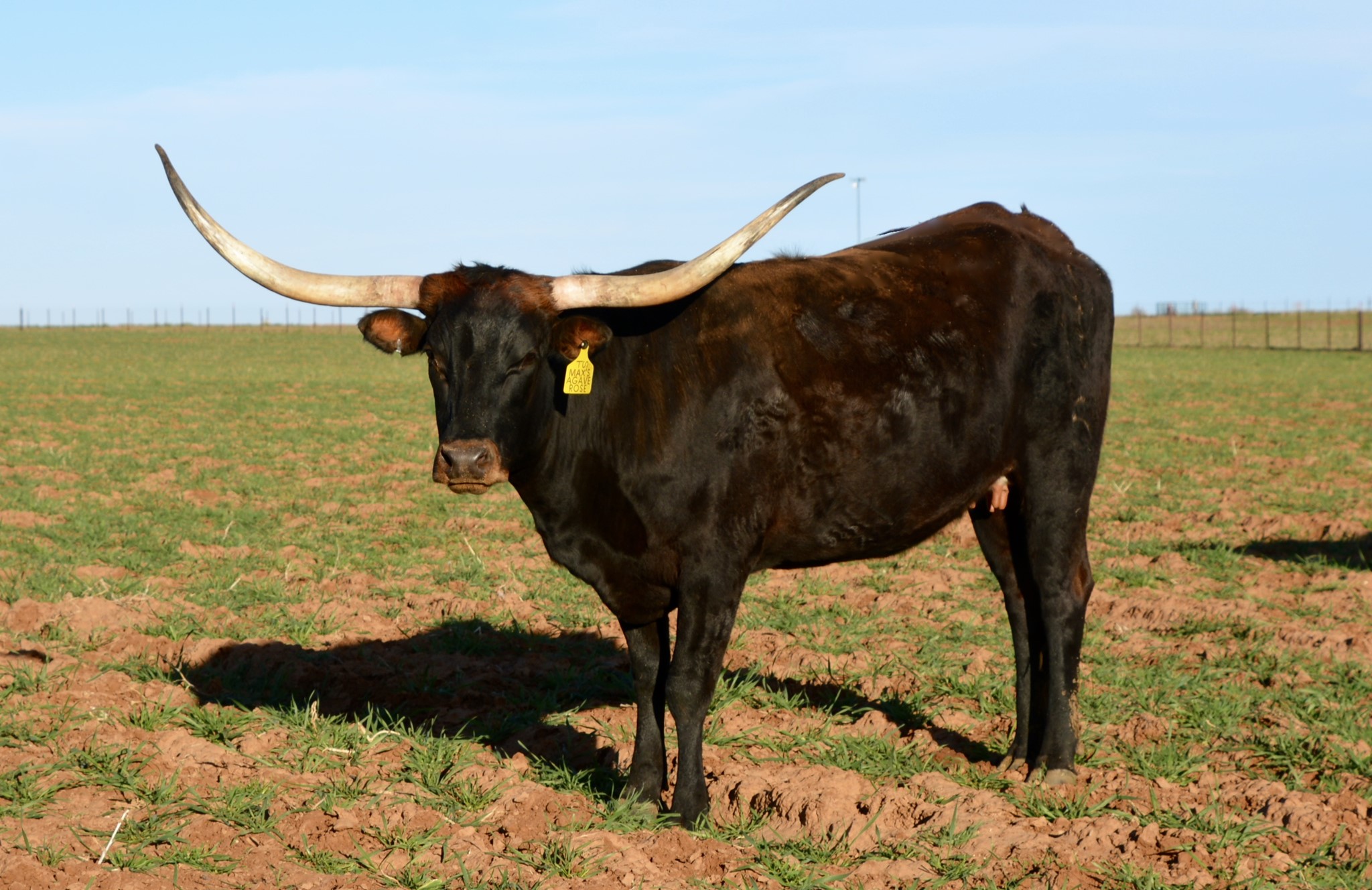 Agave Rose's sire is a bull we used to own sired by 75.75" TTT and 92" TH, Cadillac 55, and out of 85.3750" TTT and 100" Total Horn, RM Maximus Tari, who is a daughter of 78.50" TTT, Maximus ST, and 76" TTT, Windwalker's Fancy BW 3/7. Agave Rose's dam, 78" TTT, JBM Teriffic Agave, is sired by 73.25" TTT, Boomeriffic and out of 77.25" TTT, 585 Agave. Outstanding genetics for horn, color, size and productivity. Agave Rose is Millennium Futurity eligible as will be all of her future offspring.