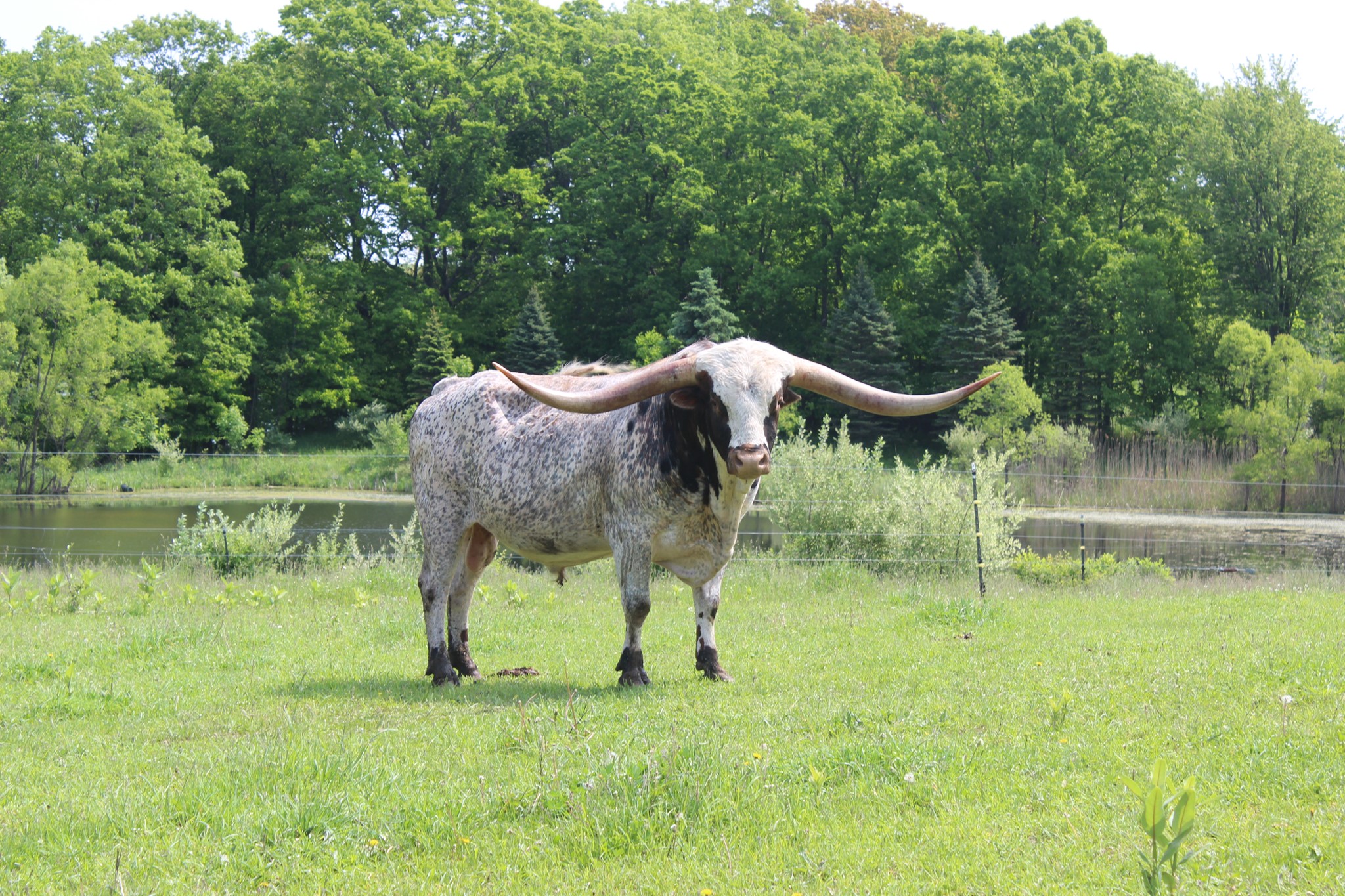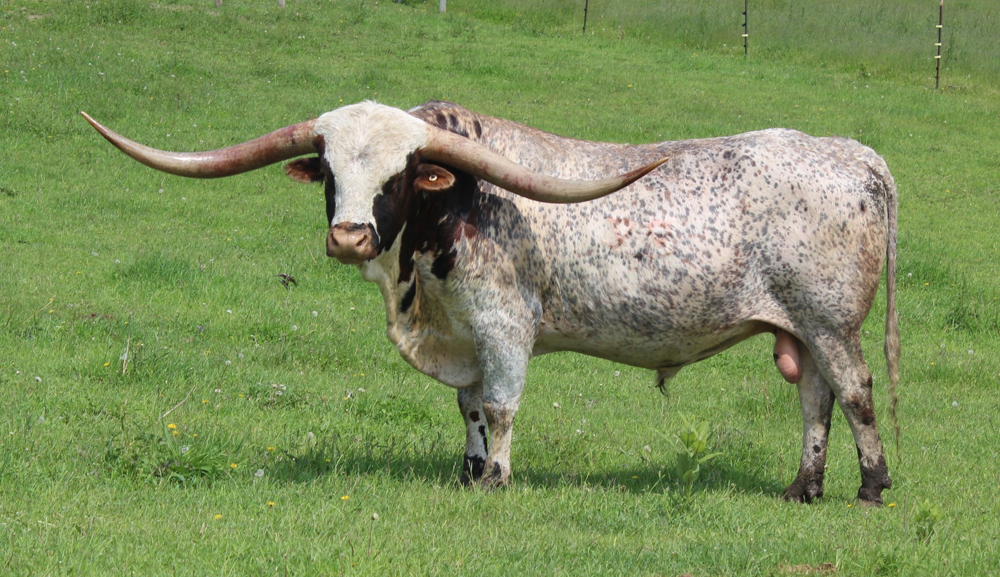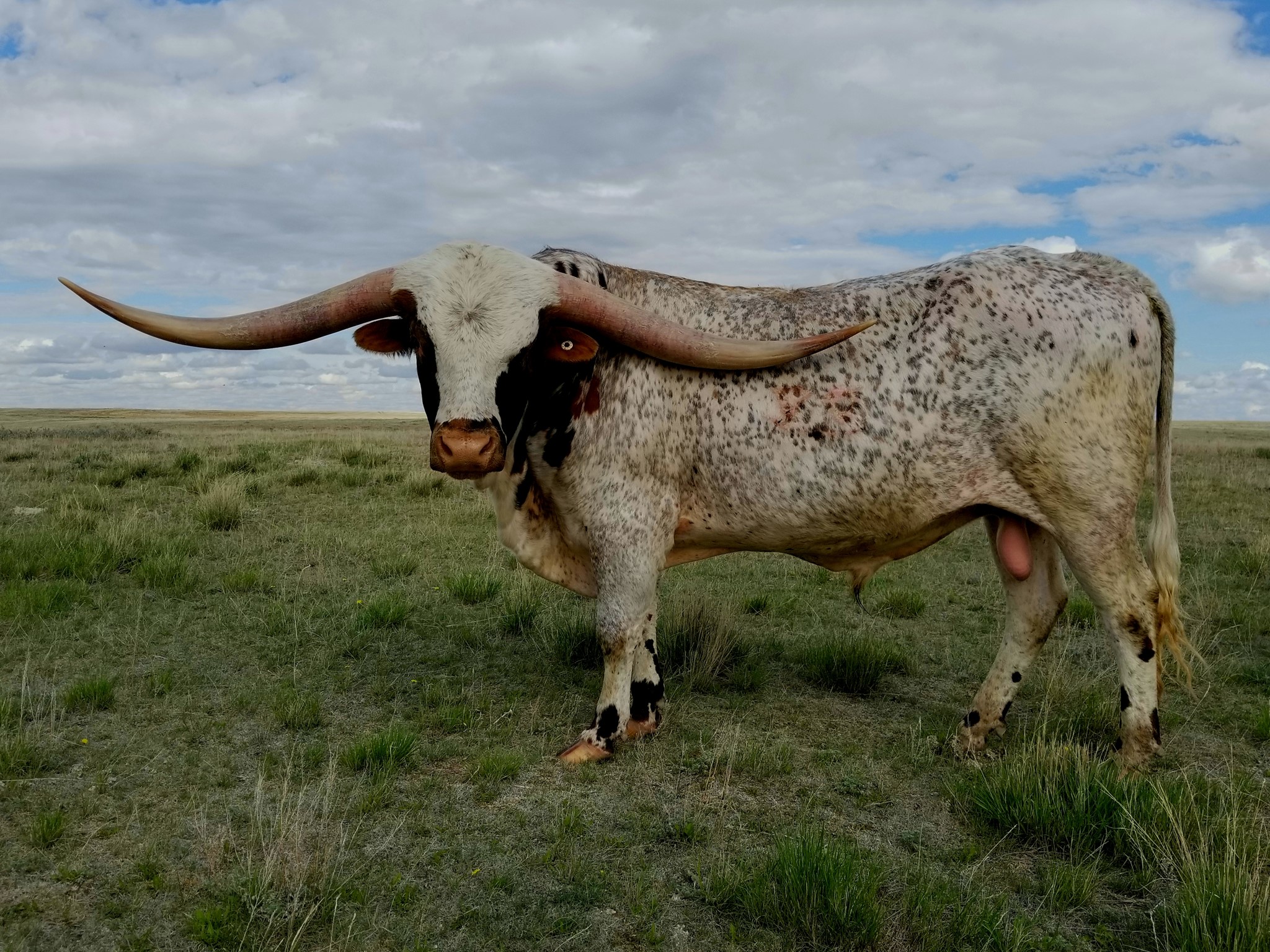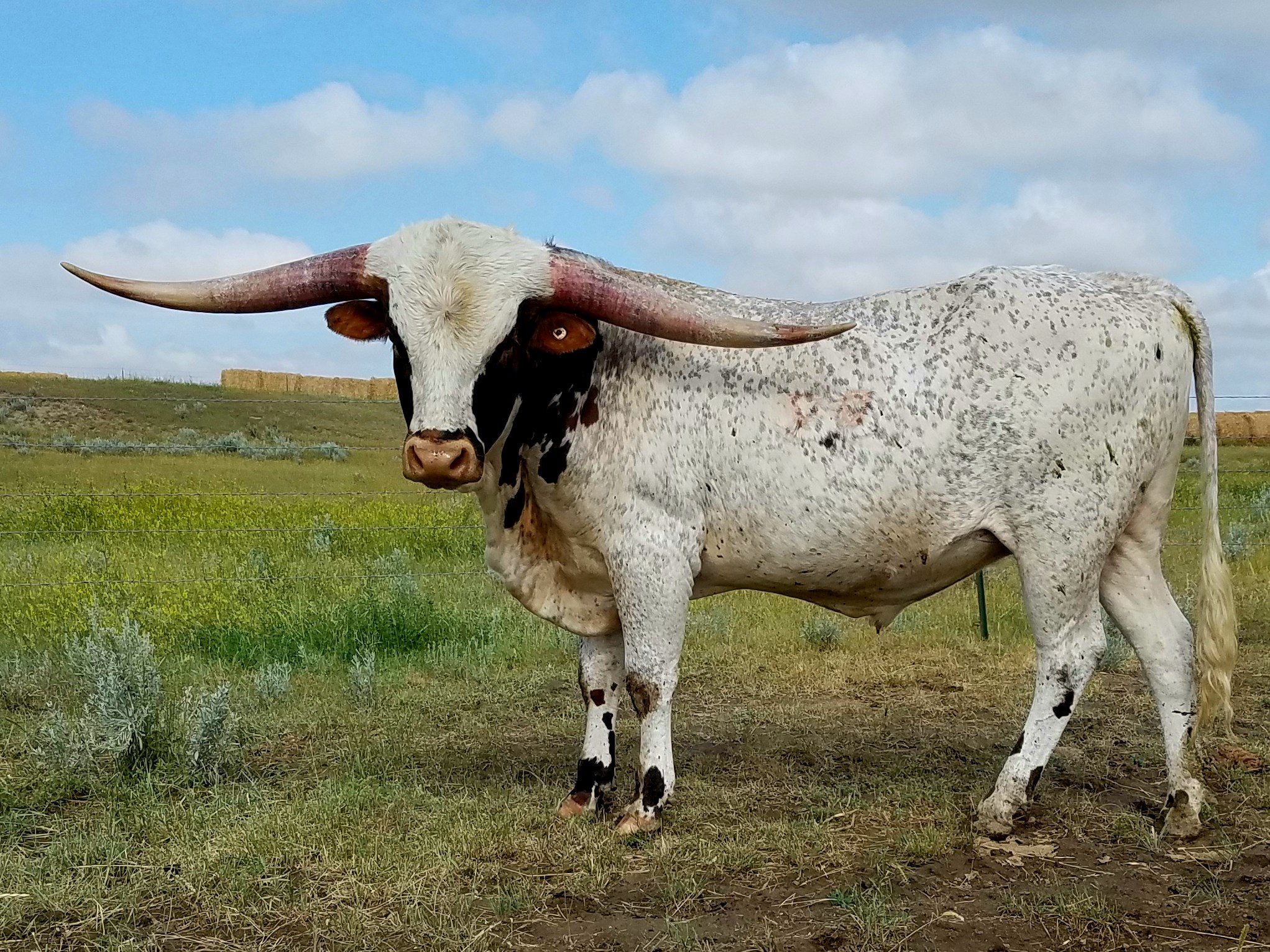 This soon to be 90" son of Tuff, is the only son I am aware of with two over 90" females, one 100" female and an over 100" sire in their pedigree. This bull is exactly what a Longhorn bull should look like and he produces too.