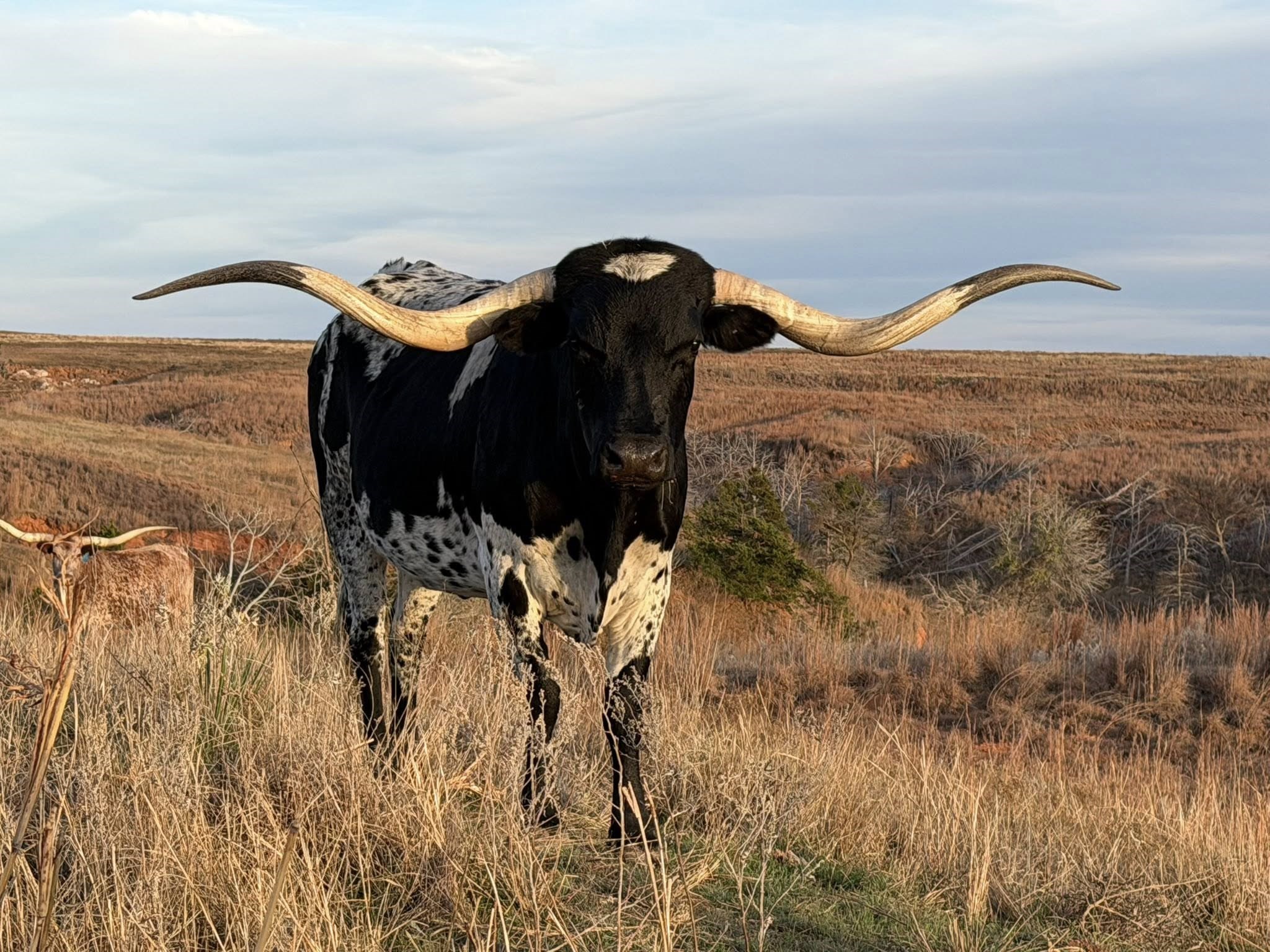 🍫 Smooth as Chocolate, Bold as Her Bloodline 🍫 Black and white beauty with a presence that stops you in your tracks — this girl is as smooth as a chocolate bar and twice as rich in pedigree. Her twisty horn set goes on for miles, adding elegance and edge to a frame that’s built to impress. An own daughter of White Dragon and out of Overkill, she carries the kind of lineage that doesn’t just decorate pedigrees — it defines them. She’s not just part of our herd — she’s part of our foundation. The kind of female that programs are built around and futures are shaped by. Producing us calves every year! PV'd and DNA on file
