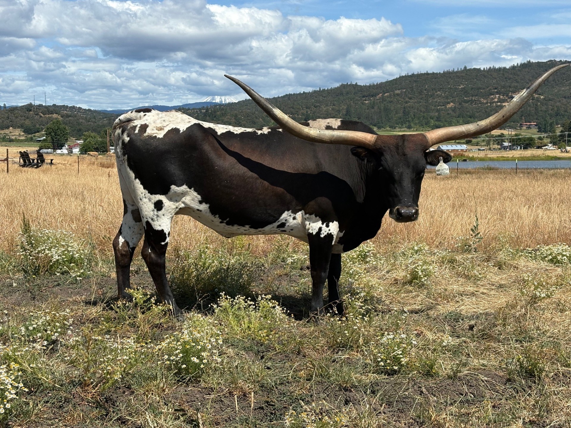 PG Magic Sequela is a beautiful chocolate and white cow bred for horn! Look at that cow power! Awesome pedigree and horn set along with great confirmation.